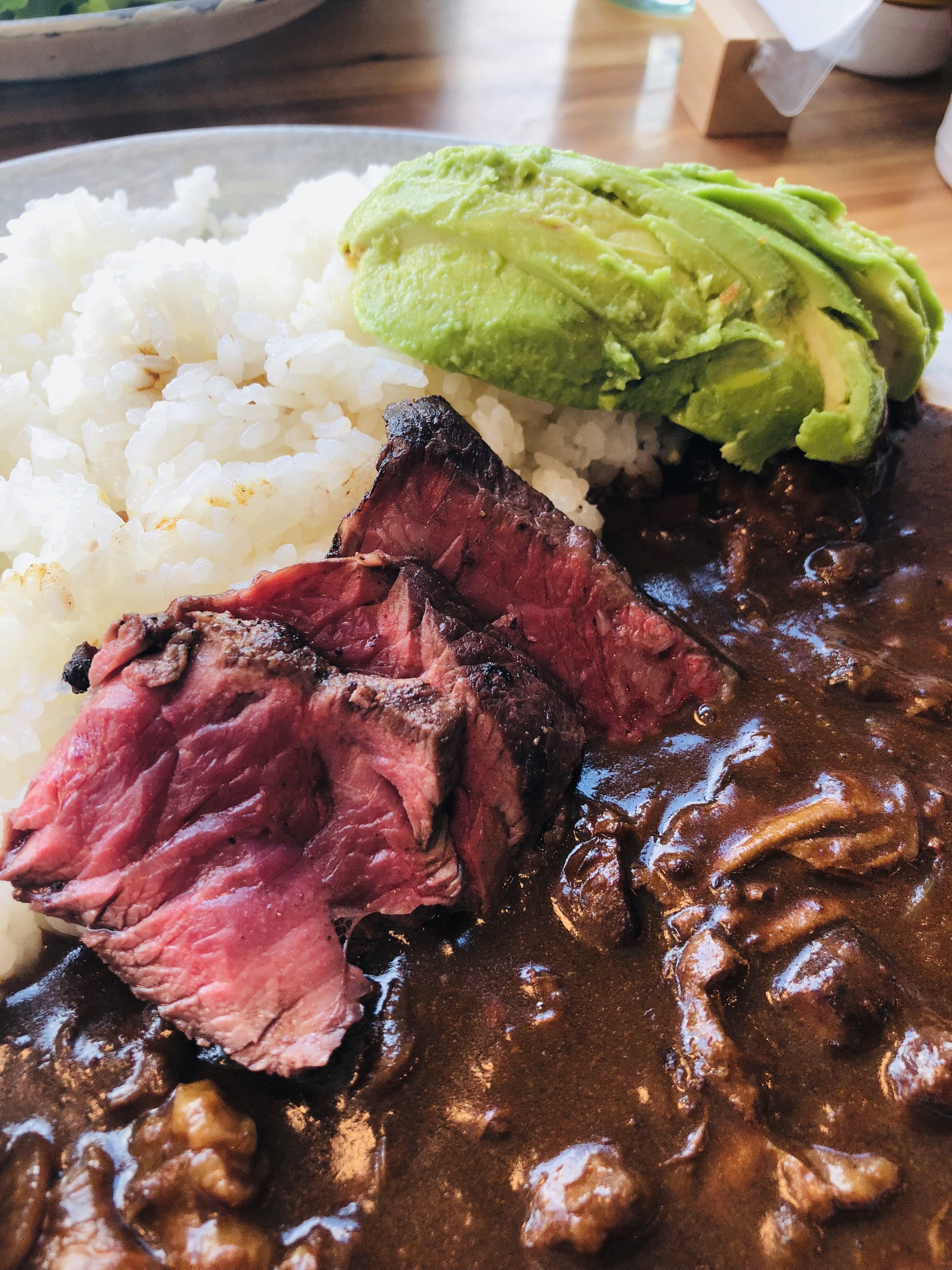 Mi plato de elección fue Steak Curry (1000 yenes) con un adicional de topping de palta. La carne estaba de diez! Y el curry es algo que sí o sí tienen que probar en Japón. Si bien es un plato originalmente de la India, ls japoneses han adaptado su versión, y el resultado es una especie de estofado de cebolla, carnes, y verduras que se come junto con arroz. Es un plato clásico que se come hasta en las casas de familia en Japón, y algo que les súper recomiendo que prueben.